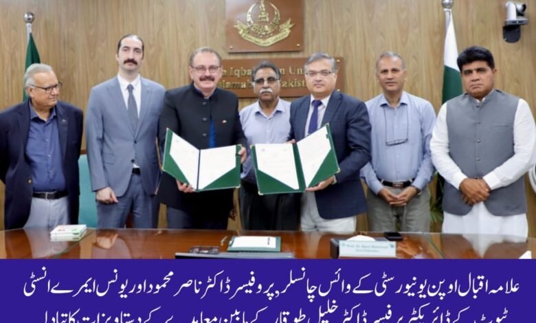 اسلام آباد ( سٹاف رپورٹ )علامہ اقبال اوپن یونیورسٹی اور ترکیہ کے یونس ایمرے انسٹی ٹیوٹ کے درمیان ترک زبان کے کورسز کے اجراء سے متعلق مفاہمت کی یادداشت (ایم او یو) پر دستخطوں کی تقریب گزشتہ روز یونیورسٹی میں منعقد ہوئی۔ اس معاہدے کا مقصد پاکستانی طلبہ کو منظم اور معیاری نصاب کے تحت ترک زبان سیکھنے کے بہترین مواقع فراہم کرنا ہے۔ایم او یو کے تحت دونوں ادارے مشترکہ طور پر میٹرک، ایف اے اور بی اے کی سطح کے لیے ترک زبان کے کورسز تیار کریں گے۔ معاہدے پر یونیورسٹی کے وائس چانسلر پروفیسر ڈاکٹر ناصر محمود اور یونس ایمرے انسٹی ٹیوٹ کے ڈائریکٹر پروفیسر ڈاکٹر خلیل طوقار نے دستخط کیے۔تقریب سے خطاب کرتے ہوئے وائس چانسلر ڈاکٹر ناصر محمود نے کہا کہ یہ اشتراک پاکستان اور ترکیہ کے تعلیمی و ثقافتی تعلقات کو مزید مستحکم کرے گا اور طلبہ کو ترک زبان سیکھنے کا نادر موقع فراہم کرے گا۔ اُن کا کہنا تھا کہ قومی و علاقائی زبانوں کے ساتھ ساتھ عالمی زبانوں کی تعلیم بھی وقت کی اہم ضرورت ہے اور یونیورسٹی کے نصابات میں زبانوں کو شامل کرنے پر کام جاری ہے۔پروفیسر ڈاکٹر خلیل طوقار نے اپنے خطاب میں کہا کہ ترک زبان کی تدریس دونوں ممالک کے تعلقات کو مزید مضبوط کرے گی۔ اُن کے مطابق ترک زبان علمی اور ثقافتی اعتبار سے ایک قیمتی ورثہ ہے اور پاکستان میں اس کے فروغ سے تعاون اور دوستی کے نئے دروازے کھلیں گے۔فیکلٹی آف سوشل سائنسز کے ڈین، پروفیسر ڈاکٹر عبدالعزیز ساحر نے کہا کہ پاکستان اور ترکیہ کے تعلقات صدیوں پر محیط ایک روشن ورثہ ہیں اور اس تعلیمی اشتراک کے ذریعے یہ رشتہ نئی نسل تک منتقل ہوگا۔بین الاقوامی امور کے ڈائریکٹر ڈاکٹر راہد مجید نے بتایا کہ پہلے مرحلے میں میٹرک سطح کے لیے ترک زبان کا کورس تیار کیا جائے گا بعد ازاں ایف اے اور بی اے کی سطح پر کام کیا جائے گا۔ اُنہوں نے کہا کہ مستقبل میں بی ایس ترک زبان و ثقافت کے پروگرام کی تیاری کی جائے گی اور کامیابی کی صورت میں ترک لسانیات کا ایک باقاعدہ شعبہ بھی قائم کیا جائے گا۔